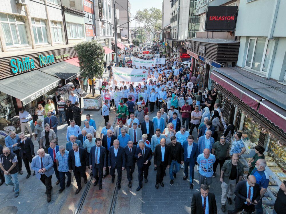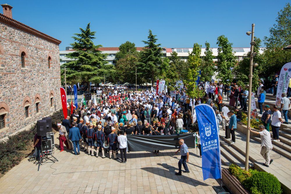 Bursalıların damaklarında yeni tatlar bırakmaya hazırlanan festival, Cumhuriyet Caddesi’ndeki kortejle başladı. Bursa Büyükşehir Belediye Başkanı Alinur Aktaş, Bursa Milletvekili Mustafa Yavuz, İl Kültür ve Turizm Müdürü Kamil Özer, Bursa Aşçılar Dernek Başkanı Necmettin Baştürk, turizm profesyonelleri, aşçılar ve vatandaşlar, mehter marşları ve kalıç kalkan gösterisi eşliğinde Ertuğrulbey Meydanı’na kadar yürüdü. Ertuğrulbey Meydanı’nda yapılan aş duasının ardından Başkan Aktaş, “Hakk şerleri hayreyler. Arif olan seyreyler. Görelim Mevla neyler. Neylerse güzel eyler. Ya Hakk ya bismillah” diyerek, vatandaşlara çorba ikram etti.